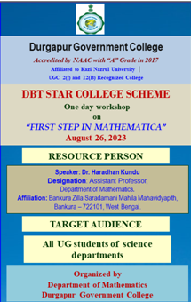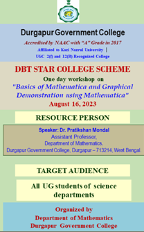 One Day Workshop on Basics of Mathematics and Graphical Demonstration using Mathematica organized by Department of Mathematics under DBT STAR COLLEGE SCHEME