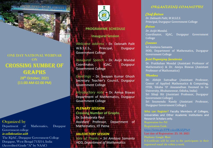 National Webinar on Crossing Number of Graphs organized by Department of Mathematics in collaboration with IQAC