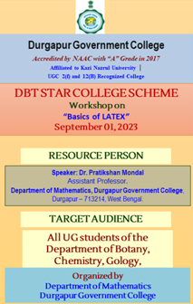 One Day Workshop on Basics of Latex organized by Department of Mathematics under DBT STAR COLLEGE SCHEME