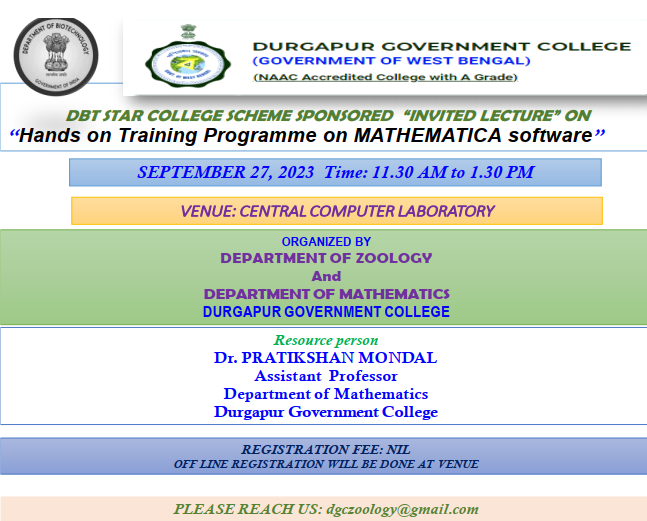 Hands on Training Programme on Mathematica Software organized by Department of Zoology and Mathematics under DBT STAR COLLEGE SCHEME
