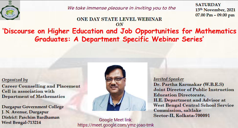 Department Specific Webinar Series on Discourse on Higher Education and Job Opportunities for Mathematics Graduates organized by Career Counselling and Placement Cell in collaboration with Department of Mathematics