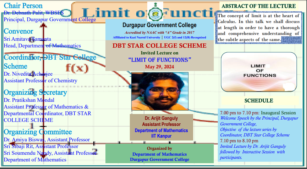 Invited lecture and interactive session on “Limit of functions” organized by Department of Mathematics under DBT STAR COLLEGE SCHEME