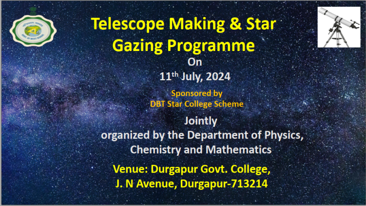 “Telescope making and Star Gazing programme” organized by Departments of Physics Chemistry and Mathematics under DBT STAR COLLEGE SCHEME