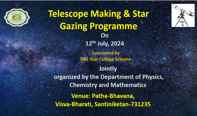 “Telescope making and Star Gazing programme” organized by Departments of Physics Chemistry and Mathematics under DBT STAR COLLEGE SCHEME for local schools at Visva Bharati, Shantiniketan