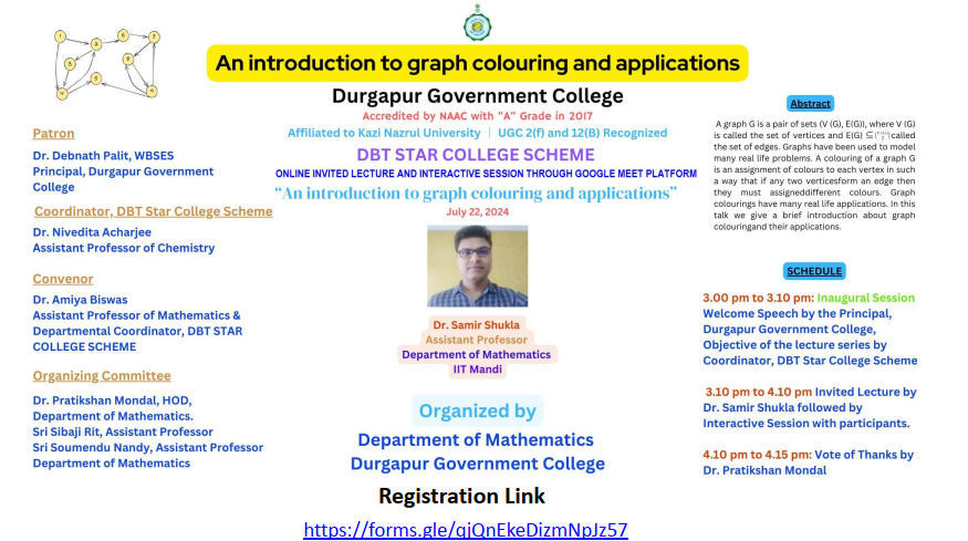 Invited Lecture and Interactive Session on “An Introduction to Graph Colouring and Applications” organized by Department of Mathematics, under DBT STAR COLLEGE SCHEME