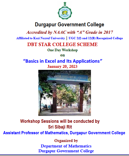Workshop on Basics in Excel and its applications organized by Departments of Mathematics under DBT STAR COLLEGE SCHEME