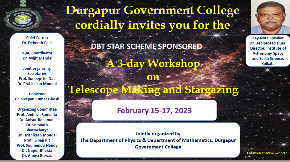 Three Day Workshop on “Telescope making and stargazing” organized by Department of Physics and Mathematics UNDER DBT STAR COLLEGE SCHEME