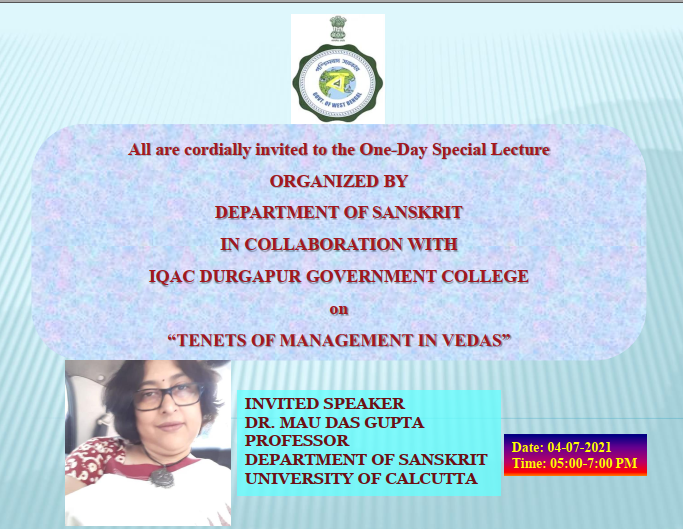 Special lecture organized by Department of Sanskrit, Durgapur Government College