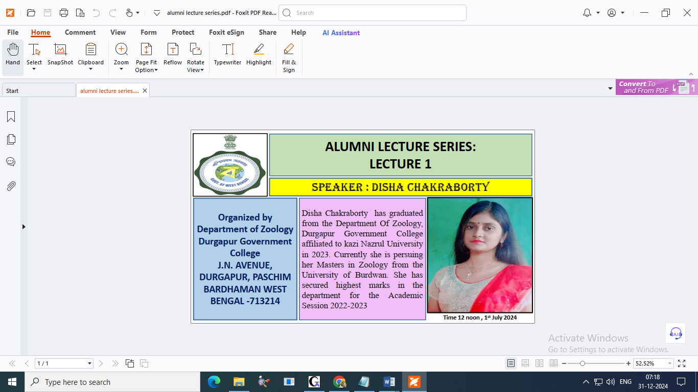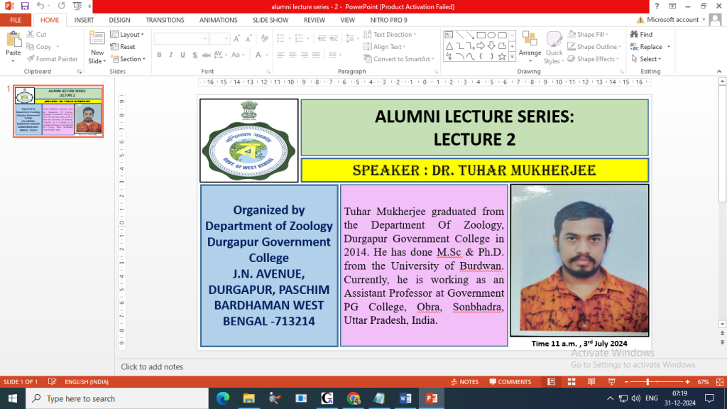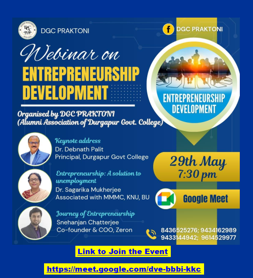 Webinar on Entrepreneurship Development organized by DGC PRAKTONI, Alumni Association of Durgapur Government College