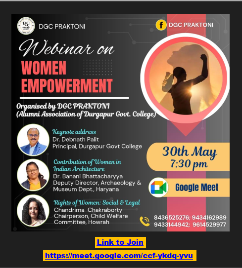 Webinar on Women Empowerment organized by DGC PRAKTONI, Alumni Association of Durgapur Government College