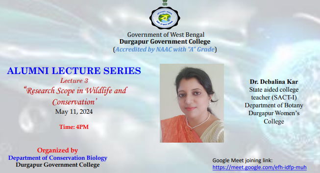 Alumni Lecture on “Research Scope in Wildlife and Conservation” organized by Department of Conservation Biology