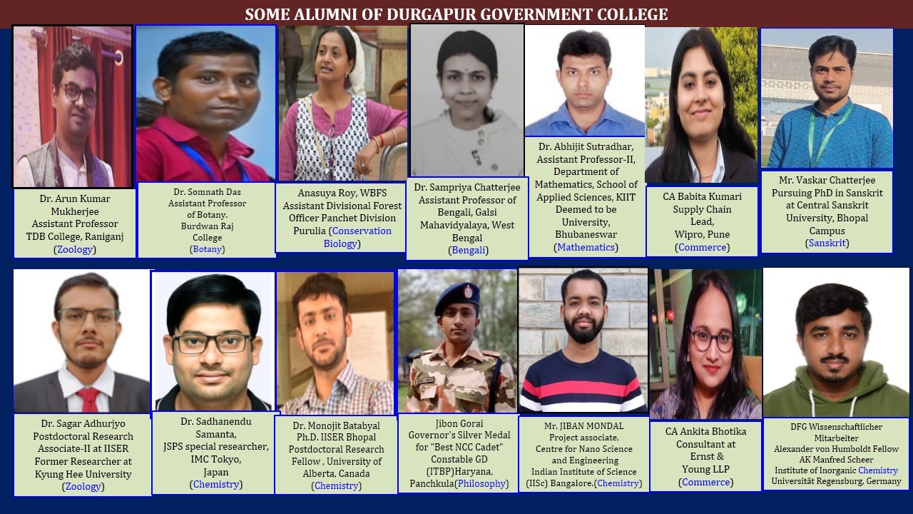 Durgapur Government College has produced brilliant graduates placed in reputed positions in institutions and organizations of national repute. The alumni of the institution Alumni Association “DGC PRAKTONI” has been recently registered and has joined hands to collaborate in the academic journey of the institution.