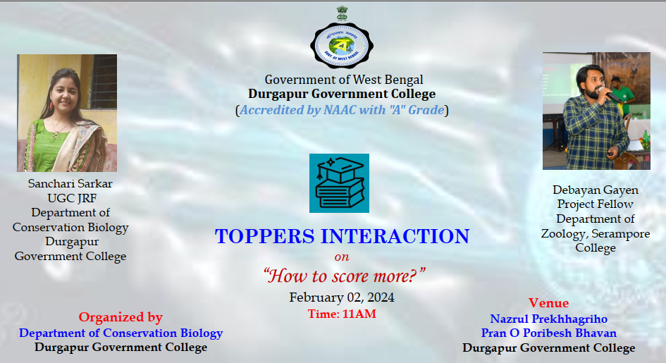 Toppers Interaction on “How to Score More” organized by Department of Conservation Biology, Durgapur Government College