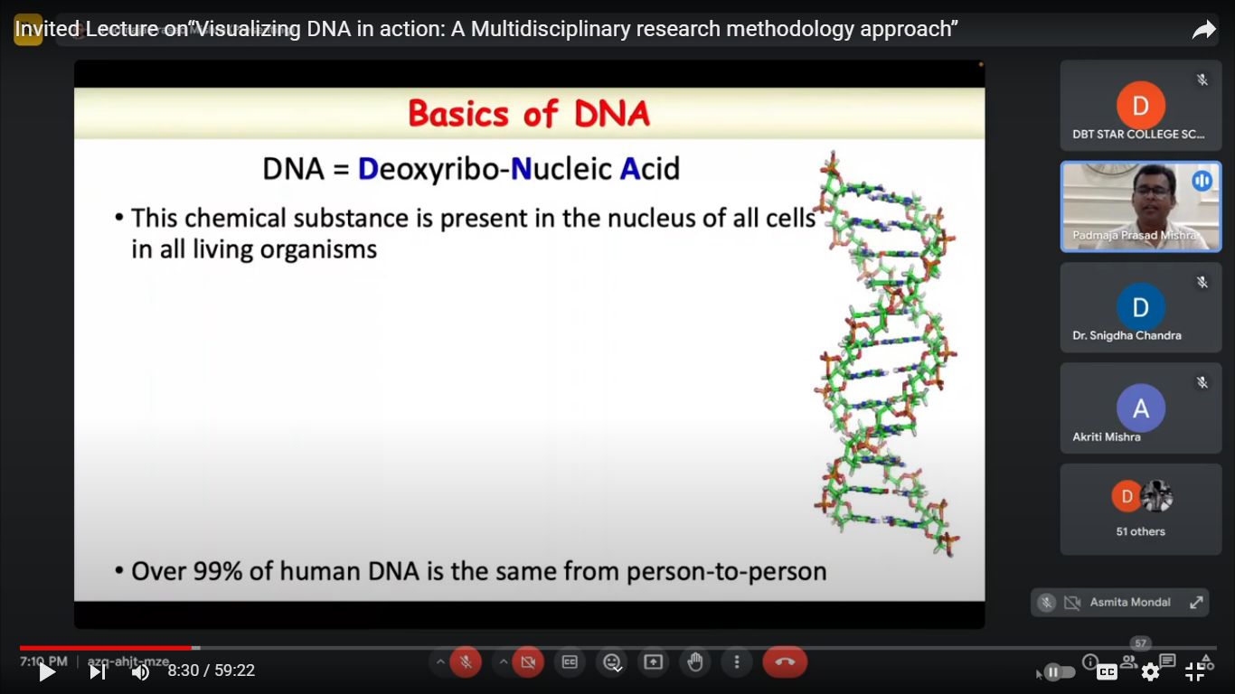 Invited lecture and interactive Session Series on “Visualizing DNA in action: A Multidisciplinary research methodology approach” organized by Department of Chemistry and Physics under the DBT STAR COLLEGE SCHEME (Online Mode)