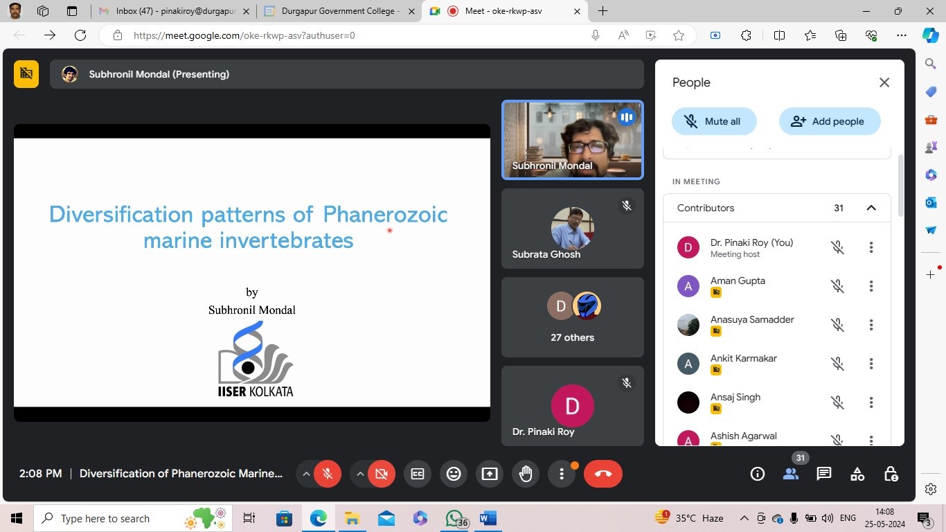 Invited lecture and interactive Session on “Diversification patterns of Phanerozoic Marine Invertebrates”to be organized jointly by Department of Geology, Mathematics and Zoology under the DBT STAR COLLEGE SCHEME(Online Mode)