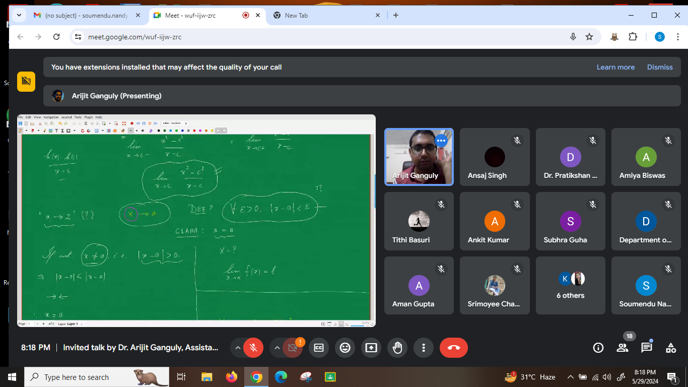 Invited lecture and interactive Session on “Limit of Functions”to be by Department of Mathematics under the DBT STAR COLLEGE SCHEME (Online Mode)