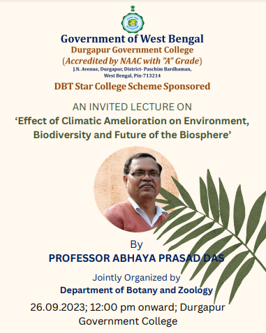 Invited Lecture on “Effect of Climatic Amelioration on Environment, Biodiversity and Future of the Biosphere” organized by Department of Botany and Zoology under DBT STAR COLLEGE SCHEME (Offline Mode)