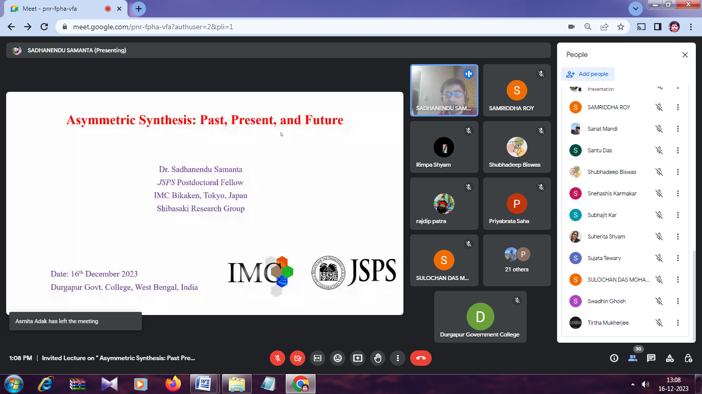 Invited Lecture and Interactive Session Series on “Asymmetric Synthesis: Past present and Future” organized by Department of Chemistry under DBT STAR COLLEGE SCHEME(Online Mode)