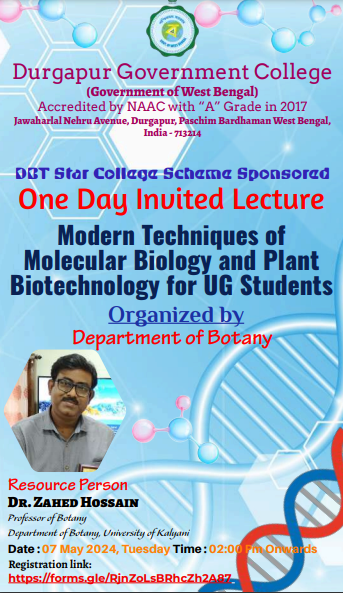 Invited Lecture on Modern Techniques of Molecular Biology and Plant Biotechnology for UG Students organized by Department of Botany under DBT STAR COLLEGE SCHEME (Online Mode)