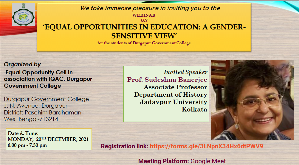 Webinar on Equal Opportunities in Education: A Gender Sensitive View organized by Equal Opportunity Cell in Association with IQAC