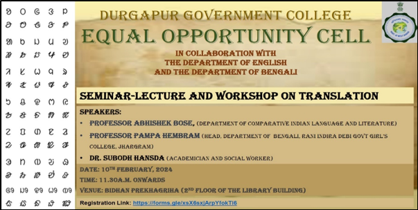Seminar Lecture and Workshop on Translation organized by Equal Opportunity Cell in collaboration with the Department of English and the Department of Bengali