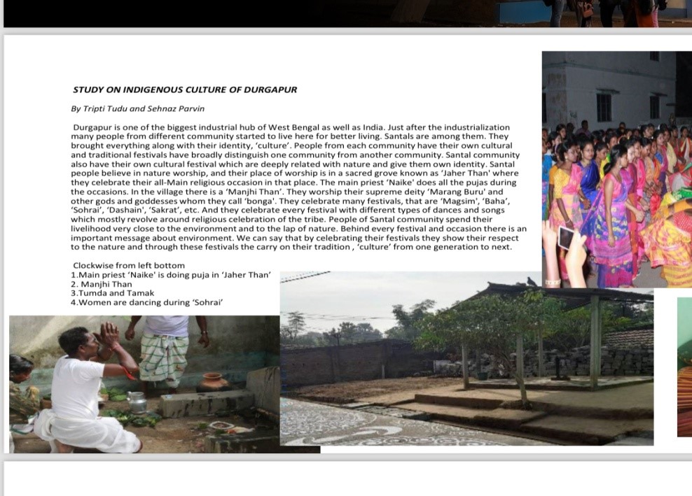 Article on “Study on Indigenous Culture of Durgapur” published by students Tripti Tudu and Sehnaj Parvin in the Newsletter published by Department of English, Durgapur Government College