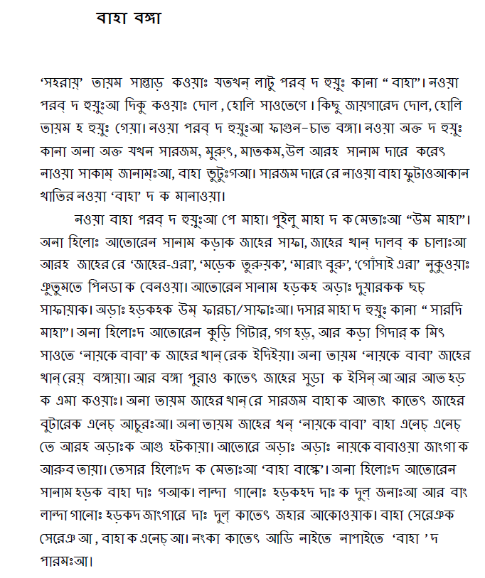 Tripti Tudu’s article on indigenous culture submitted for publication in Bhasa Lingam and Café Dissensus (forthcoming in 2024) published by New Alipore College, Kolkata.