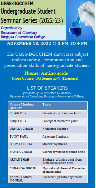 Student Seminars to assess their subject knowledge, communication and presentation skills