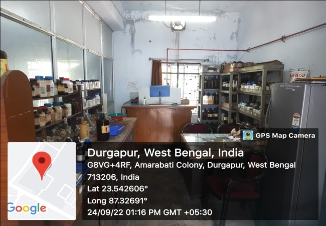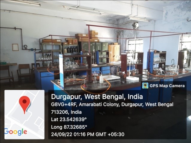 Durgapur Government College offers undergraduate programmes in five laboratory based subjects, namely, Botany, Chemistry, Geology, Physics and Zoology, post-graduate and Ph.D. programmes in Chemistry, Conservation Biology and Applied Geology. There are total 16 laboratories in the institution which include 1 botany laboratory, 5 chemistry laboratories, 2 conservation biology laboratories, 2 geology laboratories, 4 physics laboratories and 2 zoology laboratories. In addition to the laboratories, the institution also has a Geology Museum and Zoology Specimen Room. Procurement of equipment for these laboratories done through the funds received from Department of Higher Education, Government of West Bengal, DBT Star College Scheme of Department of Biotechnology, Government of India and Rashtriya Uchchatara Shiksha Abhiyan.