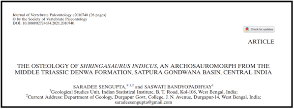 Research Collaboration with Geological Studies Unit, Indian Statistical Institute, Kolkata; 1 International research article jointly published in SCI (Web of Science)and SCOPUS indexed journal