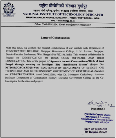 Research Collaboration with National Institute of Technology, Durgapur; 3 International research articles jointly published in SCI (Web of Science)and SCOPUS indexed journals