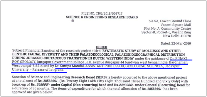 Research Collaboration with Department of Geology, Jadavpur University; 1 Joint Major Research Project funded by Department of Science and Technology, Government of India completed during the tenure 2019-2022
